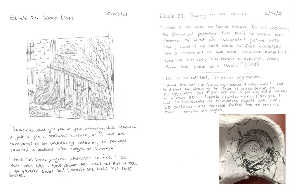 This review article, published in Visual Anthropology Review (2021) features drawn exercises from both books. The full drawing journals are located below.
