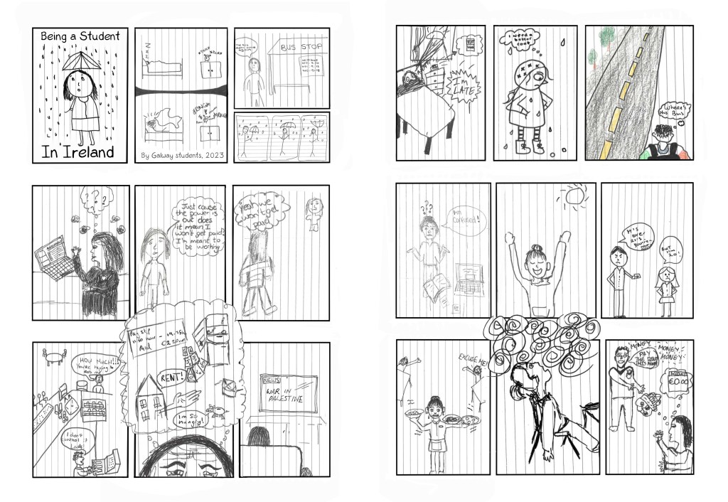 “Being a Student in Ireland.” 2023 collective class comic, edited by Julie from student check-in cards